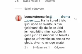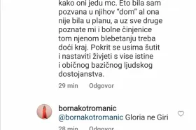 U komentarima su se ubrzo javili Bornini pratitelji, poručivši joj da je ”nisko” što je objavila određene poruke te su ju upitali zašto to radi, a Borna je ”bez dlake na jeziku” odgovarala na upite, piše dnevno.hr.