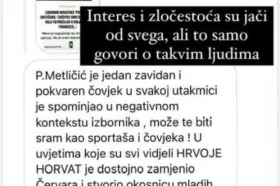Brzo nakon što je Vanja Horvat (47), sestra izbornika hrvatske rukometne reprezentacije Hrvoja Horvata (44), objavila na Instagramu story u kojem je oplela po bivšem hrvatskom reprezentativcu i stručnom komentatoru RTL-a Petru Metličiću, javili su se i drugi članovi Horvatove obitelji.