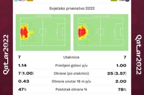 Statistika kaže da je Livaković premašio Martineza u broju obrana, i to jako puno. Argentinski vratar ukupno je obranio sedam udaraca na turniru, a Livaković čak 25. Hrvatski golman obranio je dva udarca unutar kaznenog prostora po utakmici, a postotak obrana mu je 78 posto.
