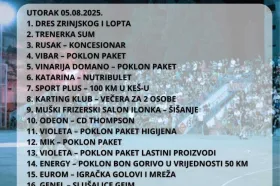 Organizatori su i ove večeri pripremili bogatu tombolu s više od 20 nagrada, među kojima su dres Zrinjskog i nogometna lopta, dok je za finalnu večer najavljen glavni zgoditak – dvije povratne avionske karte za München.