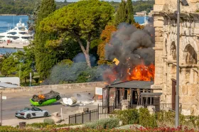 Pažnju prolaznika i fotografa danas su privukle scene prevrtanja automobila i velike eksplozije, prenosi Index.hr.