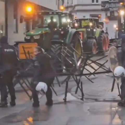 Oni su u Bruxelles stigli tijekom noći između ponedjeljka i utorka i uputili se ka glavnim lokacijama – Trgu Luksemburg ispred Europskog parlamenta i ulici De la Lua u kojoj se nalaze Europska komisija i Europsko vijeće. Donijeli su bale sa slamom koje su pobacali po ulici, upalili su logorske vatre iz kojih kulja gust dim, čuju se udari petarde, vatromet, sirene, muzika….