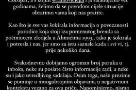 "Kao što je sve vas šokirala informacija o povezanosti obitelji koja stoji iza spomenutog brenda s počiniteljima zlodjela u Ahmićima 1993., tako je šokirala i potresla nas, jer smo za istu saznale kada i svi vi, tj. prije nekoliko dana", napisala je Šejla.