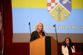 Na svečanoj sjednici nazočne je pozdravila, Borjana Krišto, zamjenica predsjednika HDZ-a BiH i zamjenica predsjedatelja Zastupničkog doma Parlamentarne skupštine BiH.