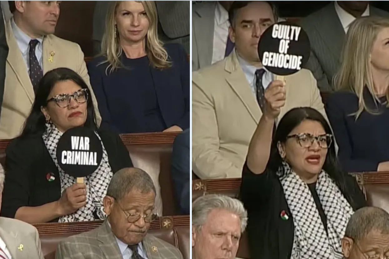 Premijer Izraela Benjamin Netanyahu održao je jučer govor u američkom Kongresu, a jedan detalj posebno je privukao pažnju. Zastupnica Rashida Tlaib je držala znak gdje se on naziva ratnim zločincem tijekom cijelog govora.