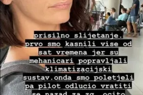 "Prisilno slijetanje. Prvo smo kasnili više od sat vremena jer su mehaničari popravljali klimatizacijski sustav. Onda smo poletjeli pa se pilot odlučio vratiti nazad za Zagreb. Očito nisu bili popravili kvar", napisala je pa dodala: