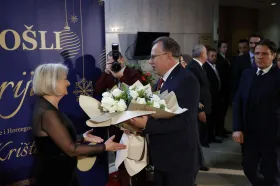 Predsjedateljica Vijeća ministara Bosne i Hercegovine Borjana Krišto priredila je večeras u zgradi institucija BiH tradicionalni svečani božićni prijem.