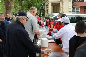 MOSTAR, 1. svibnja (FENA) – I ove godine grad Mostar i sindikati uz pomoć djelatnika i volontera Crvenog križa organizirao je druženje i podjelu graha u parku Zrinjevac. (Foto FENA/Mario Obrdalj)