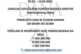 Inicijativa ''40 dana za život'' održat će se od 5. ožujka do 13. travnja u Mostaru, a provodit će se kroz bdijenje ispred Sveučilišne kliničke bolnice (SKB) Mostar svakodnevno od 8 do 20 sati.