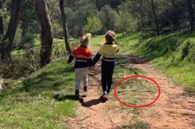 Žena koja je u ponedjeljak s djecom otišla u šetnju uz rijeku Mitta u australskoj Victoriji ostala je u šoku kad je pogledala fotografije koje je snimila. Na jednoj od fotografija pored njene djece nalazi se opasna životinja, no tijekom šetnje po puteljku ni ona ni djeca nisu je vidjeli.