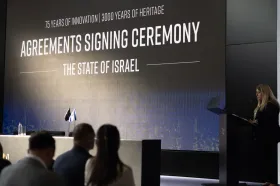 Glavni događaj u petak, 5. svibnja u Nacionalnom izraelskom paviljonu bila je ceremonija potpisivanja sporazuma.