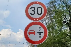 To ne omogućuje uvijek slobodan prolaz automobila jer je nemoguće ostvariti minimalno jedan i pol metar bočnog razmaka pri pretjecanju, koliko je propisao zakonom. Kazna za nepridržavanje propisa je 70 eura. "Budući da vozači krivo procjenjuju situaciju, zabrana pretjecanja bicikala i motocikala sada se ilustrira novim prometnim znakom", poručile su gradske vlasti za SWR.