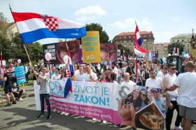 Nekoliko tisuća sudionika sedme po redu povorke, pod geslom "Život je zakon", okupilo se ispred zgrade HNK odakle su krenuli prema Zrinjevcu, uz pozive na zakonsku i svaku drugu zaštitu nerođene djece i njihovih obitelji te na očuvanje prava na priziv savjesti.