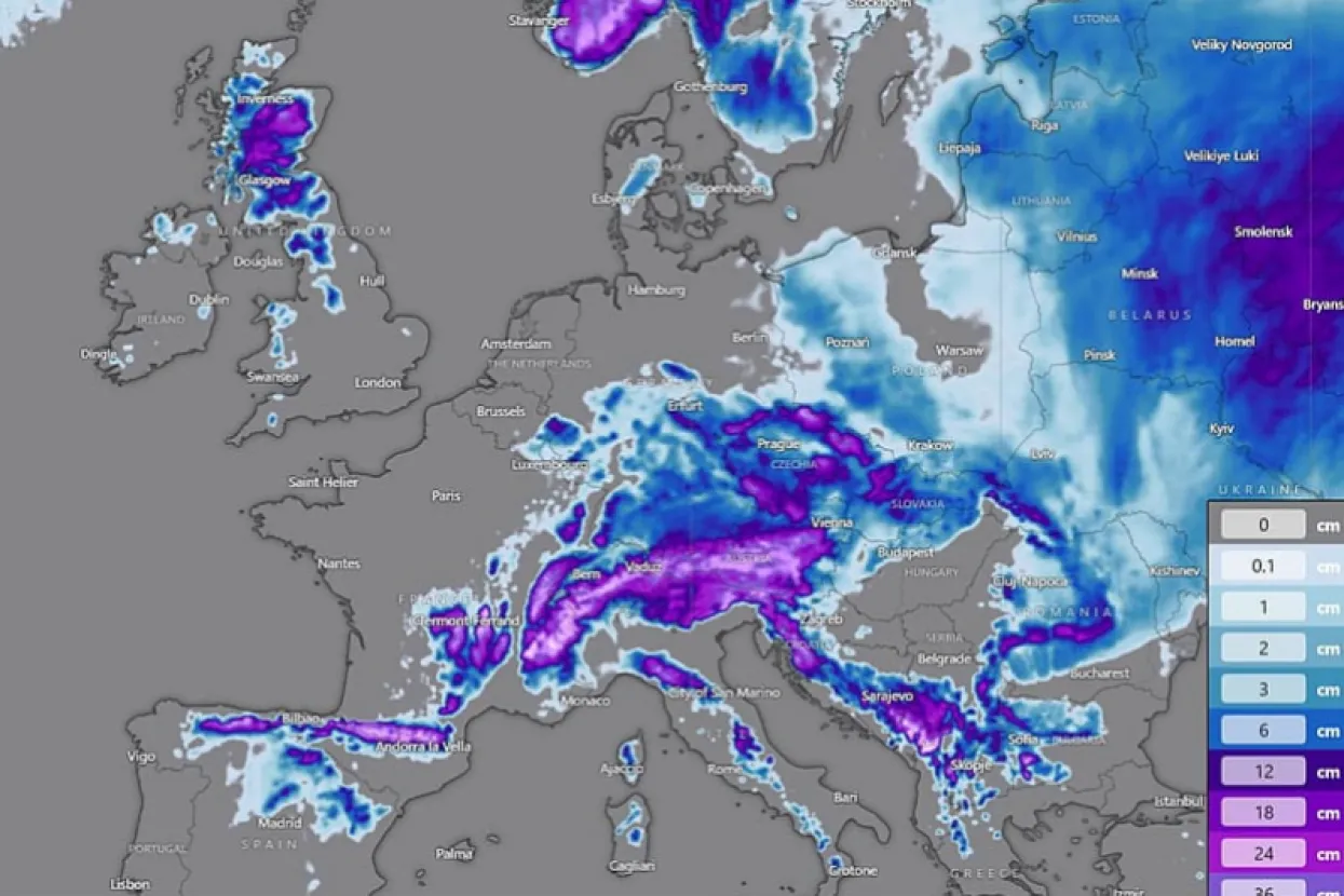 Zahvaljujući velikom bloku "High" koji se razvija iznad Atlantika, vjetrovi će skrenuti na sjever i potisnuti hladnije zračne mase u zapadnu i središnju Evropu, izazivajući intenzivnu zimsku oluju od petka do nedjelje. U mnogim područjima će padati jaka kiša i snijeg, a lokalni uvjeti putovanja će biti teški.