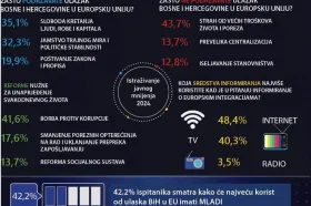Za ulazak u Europsku uniju izjasnilo se 71,2% građana BiH, no potpora se smanjuje, a u RS-u pala ispod 50 posto