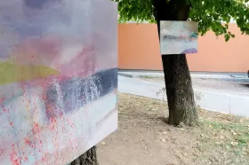 “Izašli smo u park ispred škole, kako bi slike koje su nastale u plain airu, u prirodi, u sjenci drveća, na livadi, na brdu Požeblju kod borovičke crkve i njenoj okolini, izložili u sličnom prirodnom ambijentu u kom su stvarane i na taj način ih predstaviti vareškoj javnosti“.