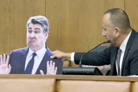 Neka se na saslušanje dovedu bivši Mostovi ministri Tomislav Panenić i Slaven Dobrović zbog gašenja sisačke rafinerije, Petrov zbog dvije milijarde kuna vezanih uz arbitražu za Inu i Zoran Milanović da javnost čuje što se događalo u klubu u Slovenskoj, zatražio je Zekanović te izvadio njihove kartonske likove.