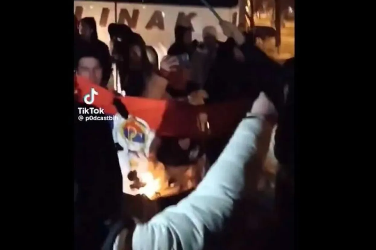 Objavljen je i snimak na kojem je grupa mladića, navodno na Bilinom Polju, zapalila zastavu Republike Srpske.